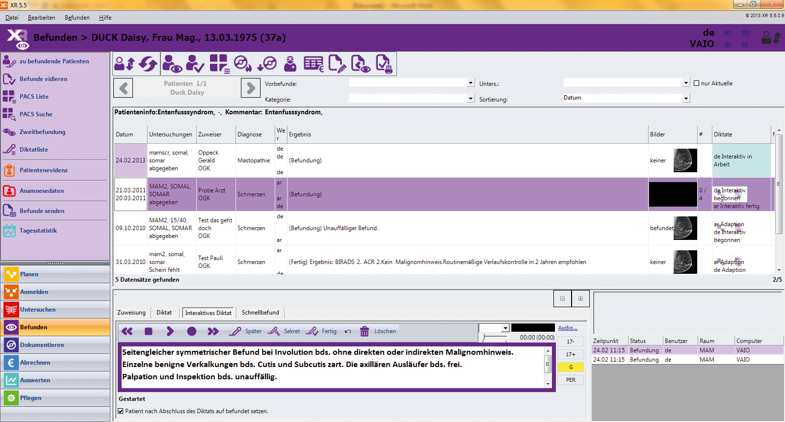 Eine schnelle & effiziente Befundung war die wichtigste Vorgabe bei der Entwicklung des Arbeitsbereiches Befunden.
